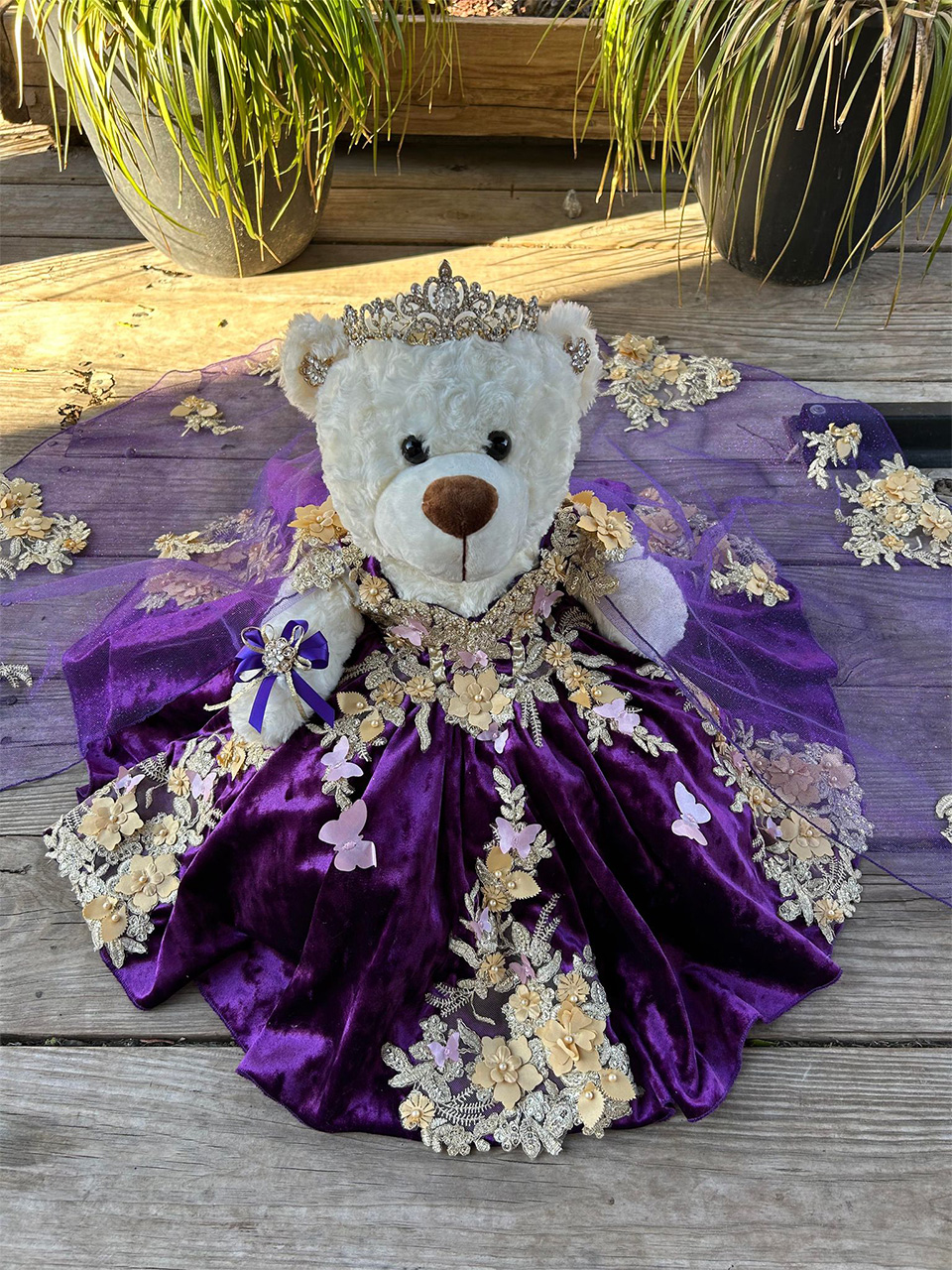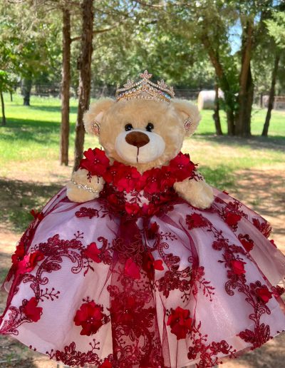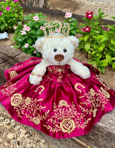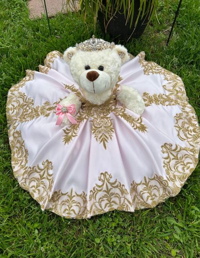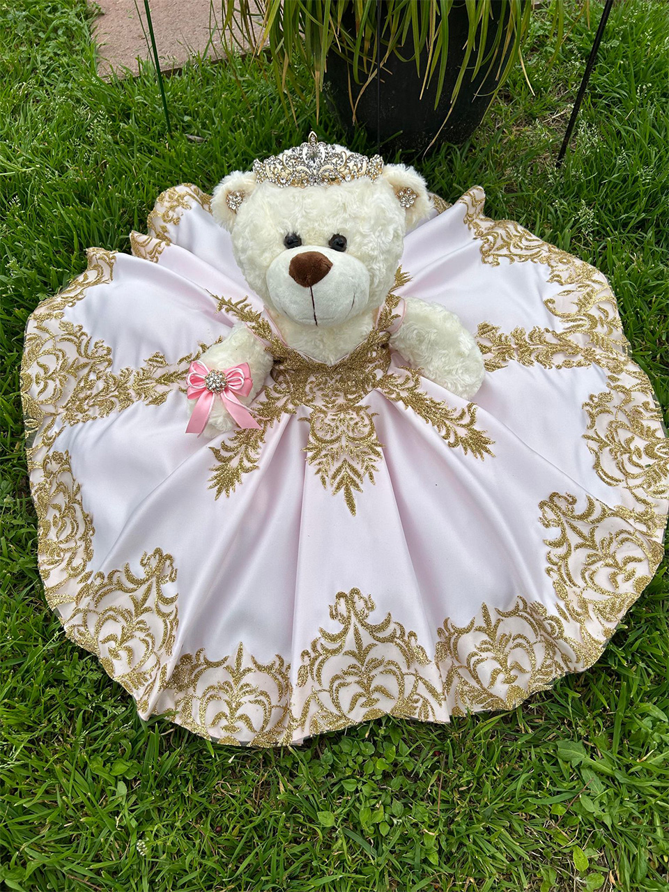 Si deseas una osita que combine con tu vestido de Quinceañera, estamos aquí para hacerla realidad. Podemos crear una réplica del vestido de la osita o diseñar algo completamente único. ¡Escríbenos con tus ideas y nos pondremos manos a la obra!