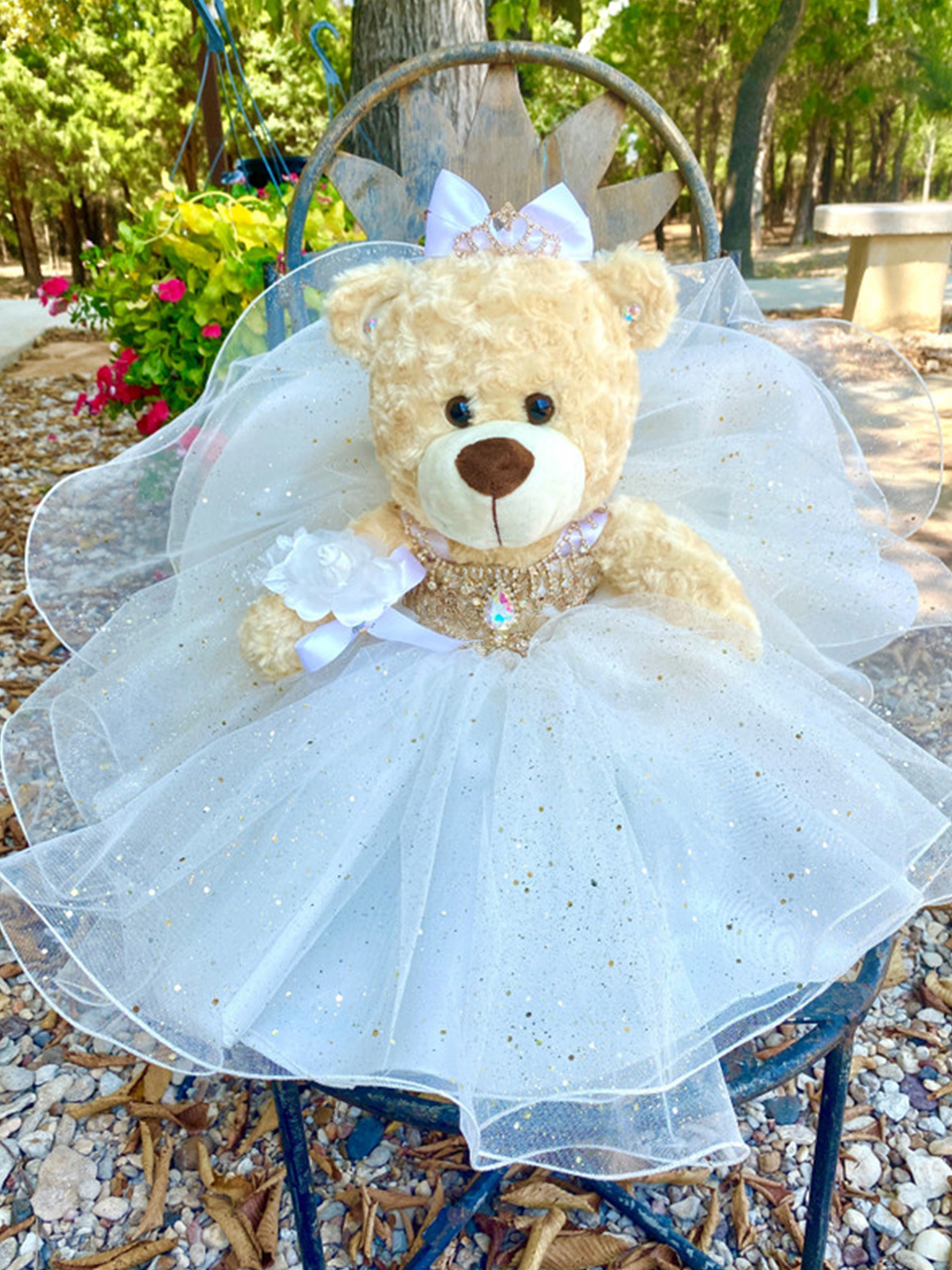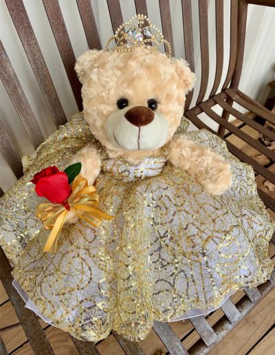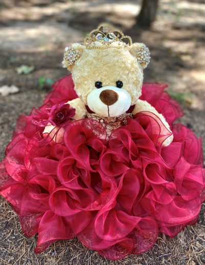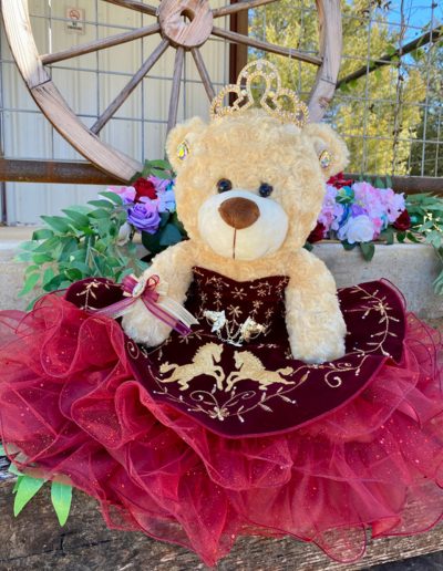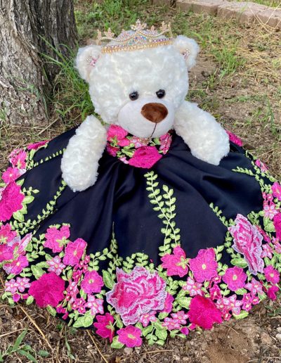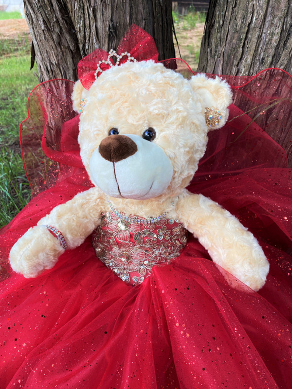 Si deseas una osita que combine con tu vestido de Quinceañera, estamos aquí para hacerla realidad. Podemos crear una réplica del vestido de la osita o diseñar algo completamente único. ¡Escríbenos con tus ideas y nos pondremos manos a la obra!